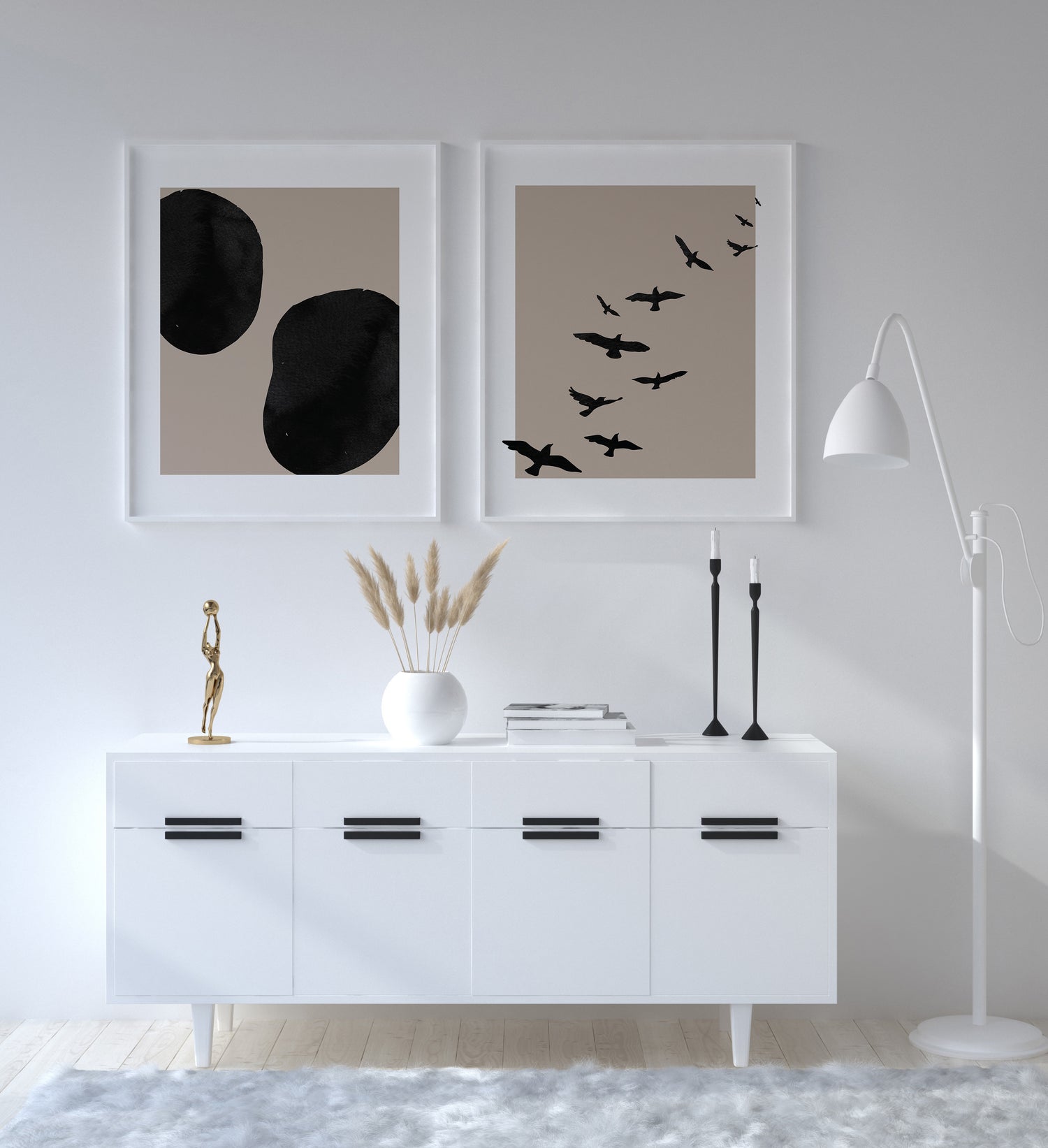 Alice abstract print from the Autumn collection. Designed on a white background with a neutral taupe and a black design.