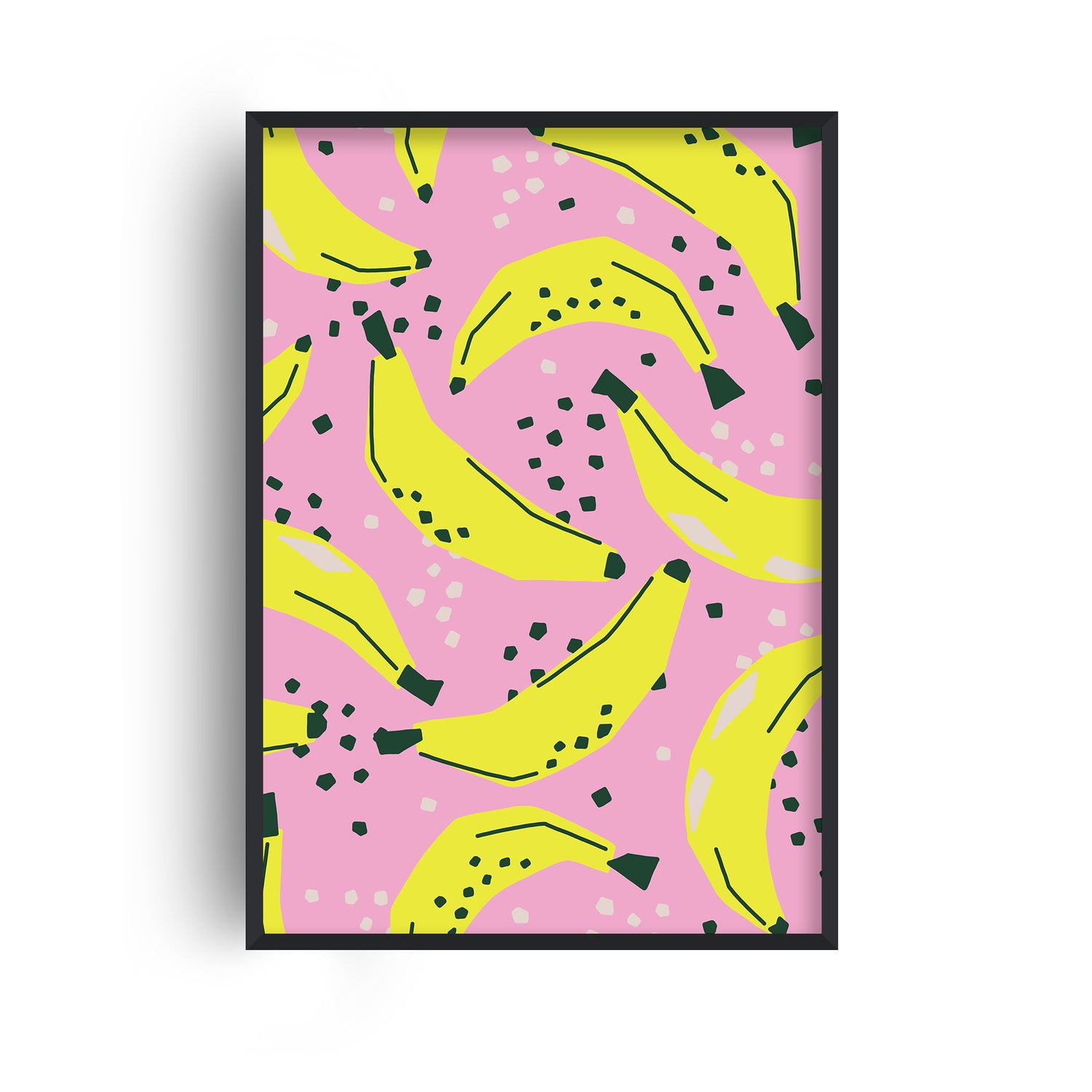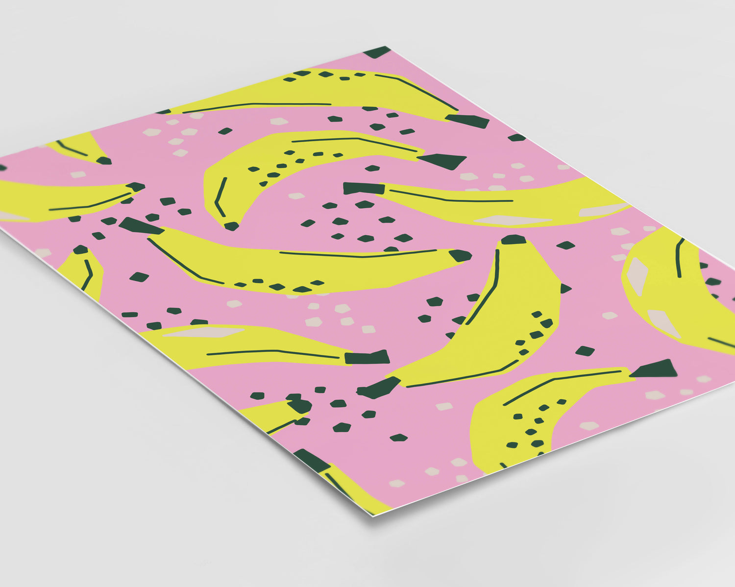 Banana bold print. Designed on a pink background, with a bold banana illustration design.