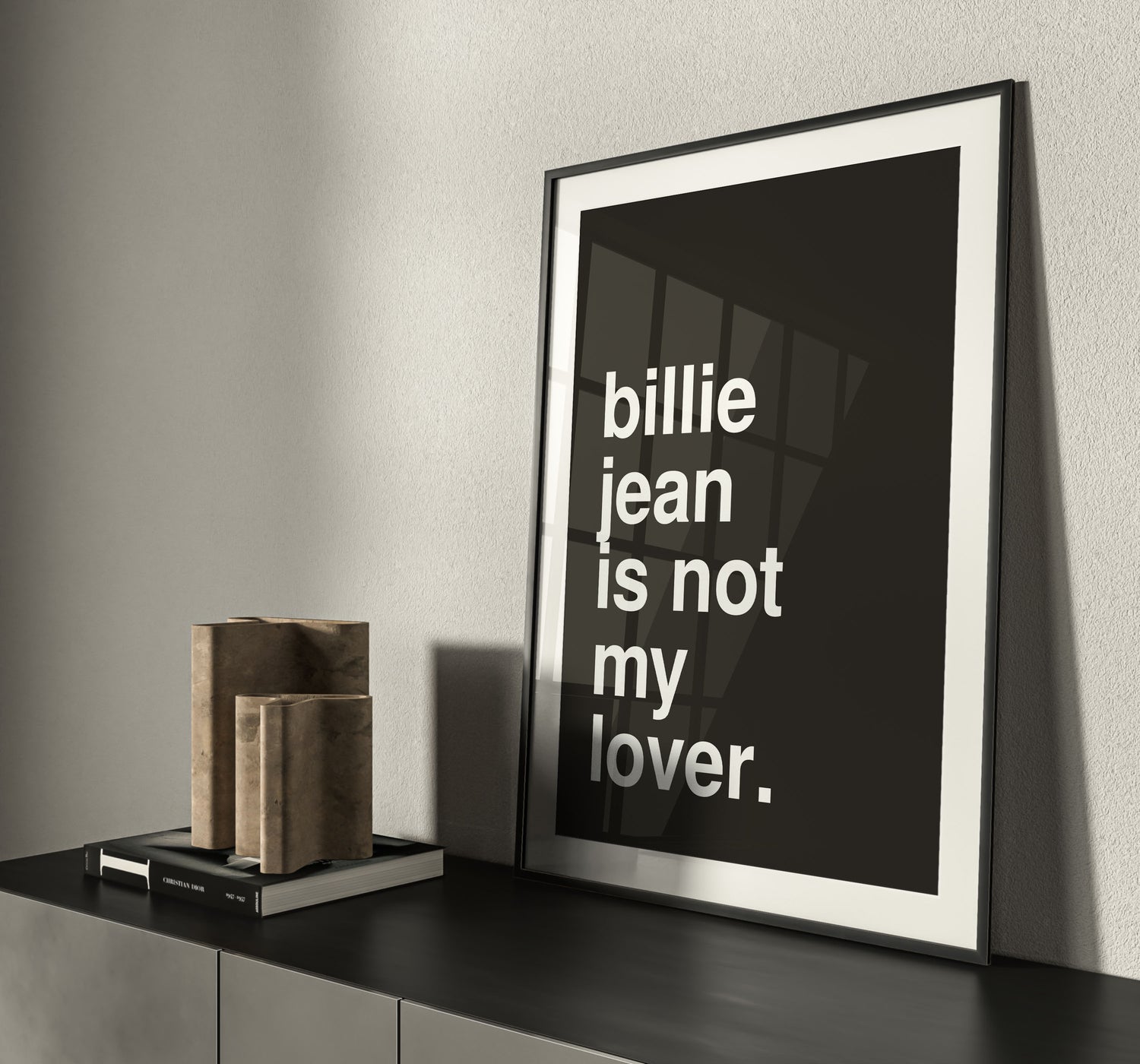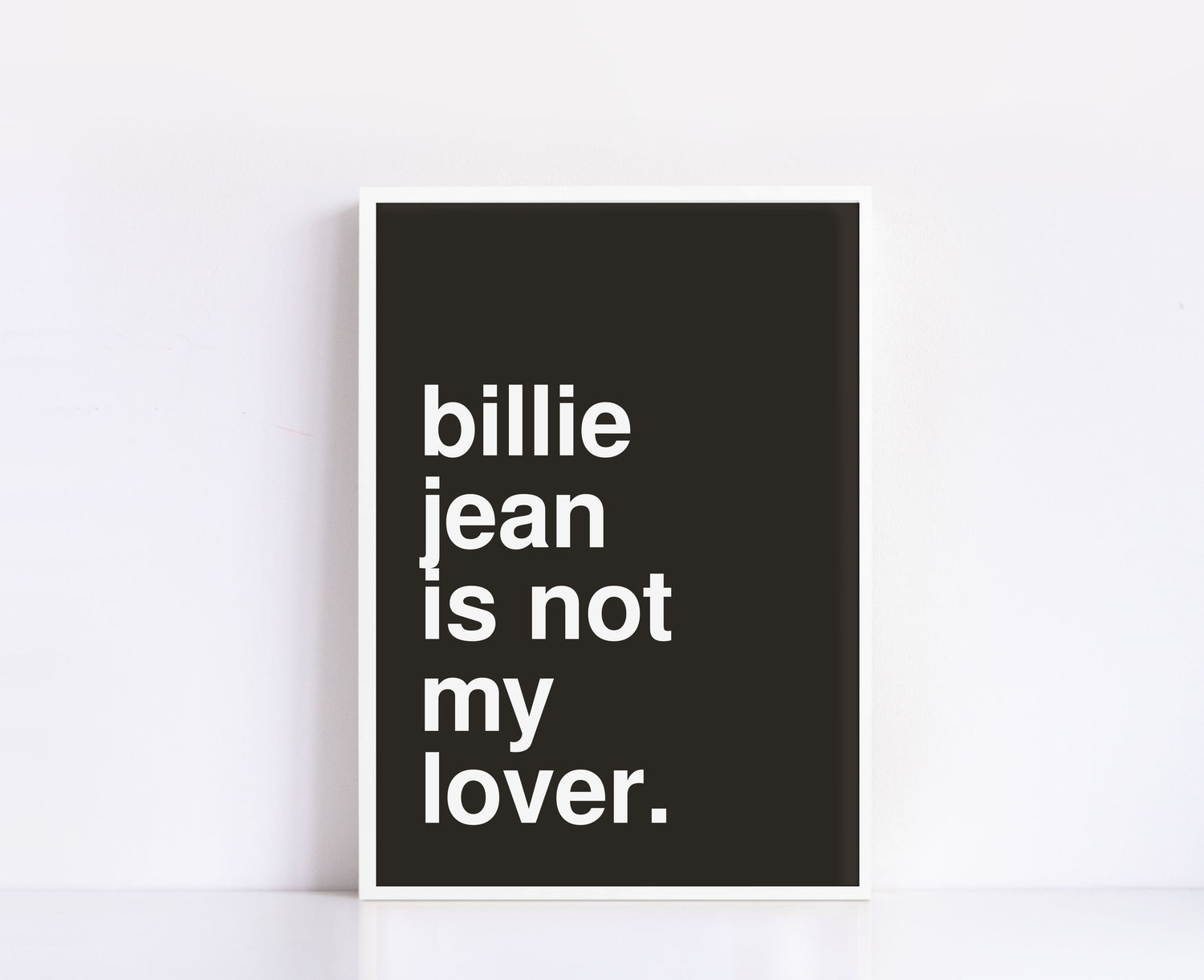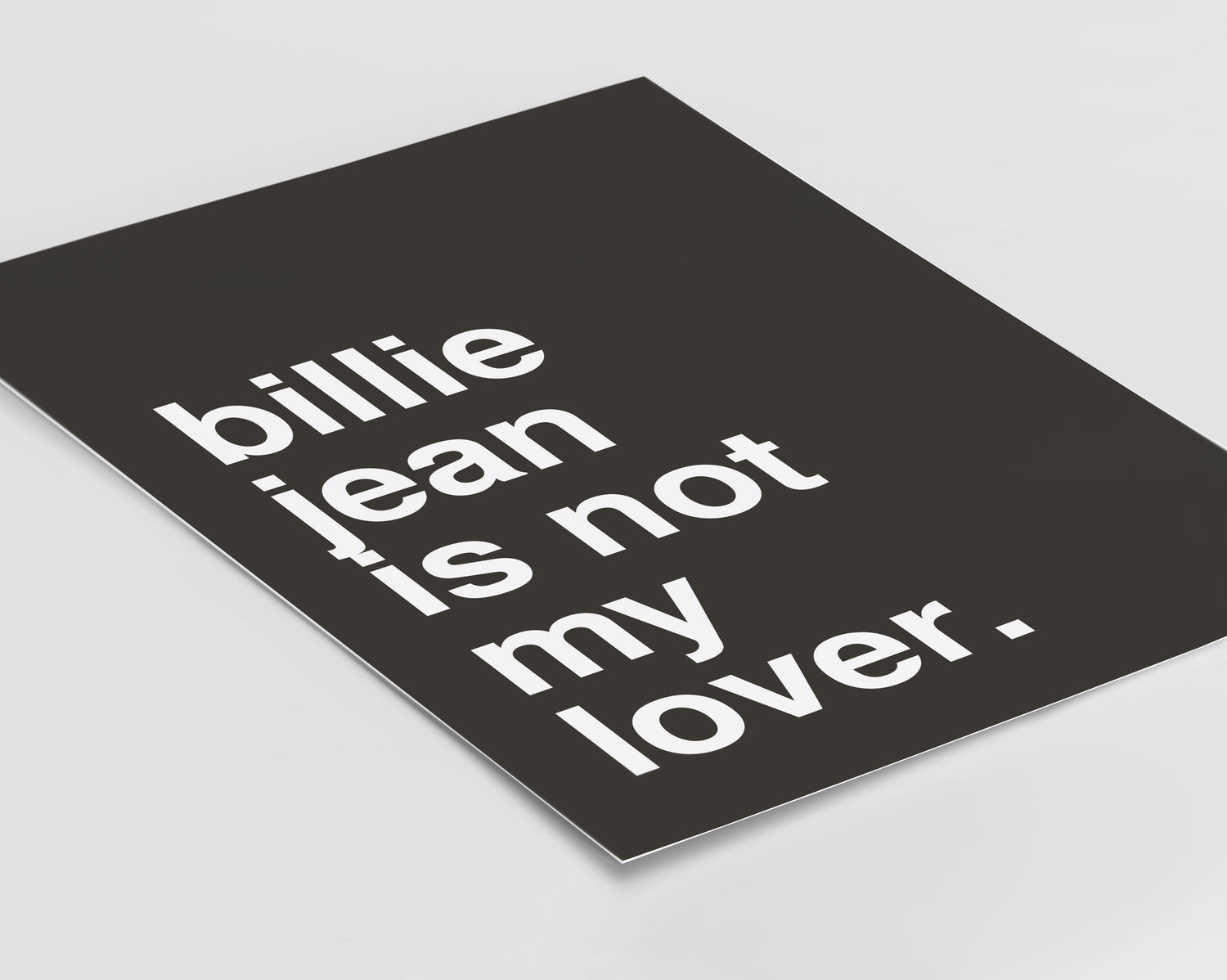Billie Jean is not my lover print. Designed on a black background with typography styled in white.