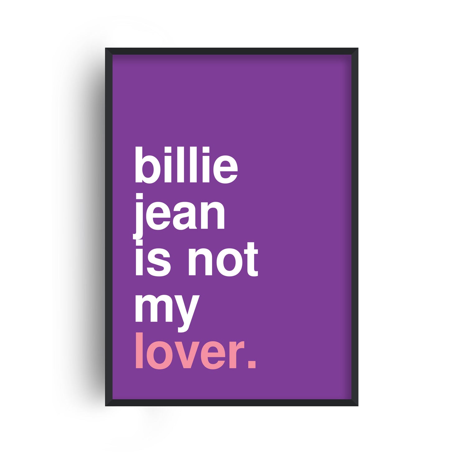 Billie Jean is not my lover print. Designed on a purple background with typography styled in a white and pink.