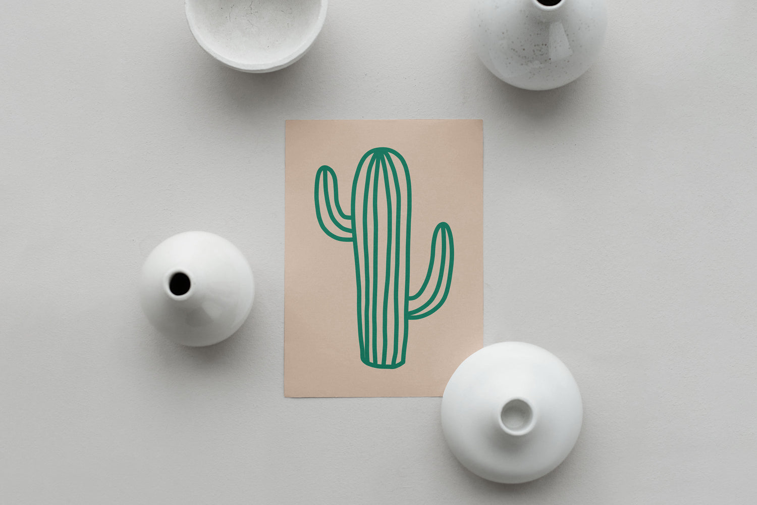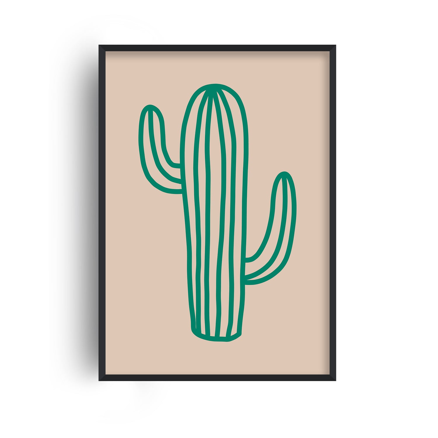 Cactus print. Designed on a neutral beige background, with a cactus illustration design in green.