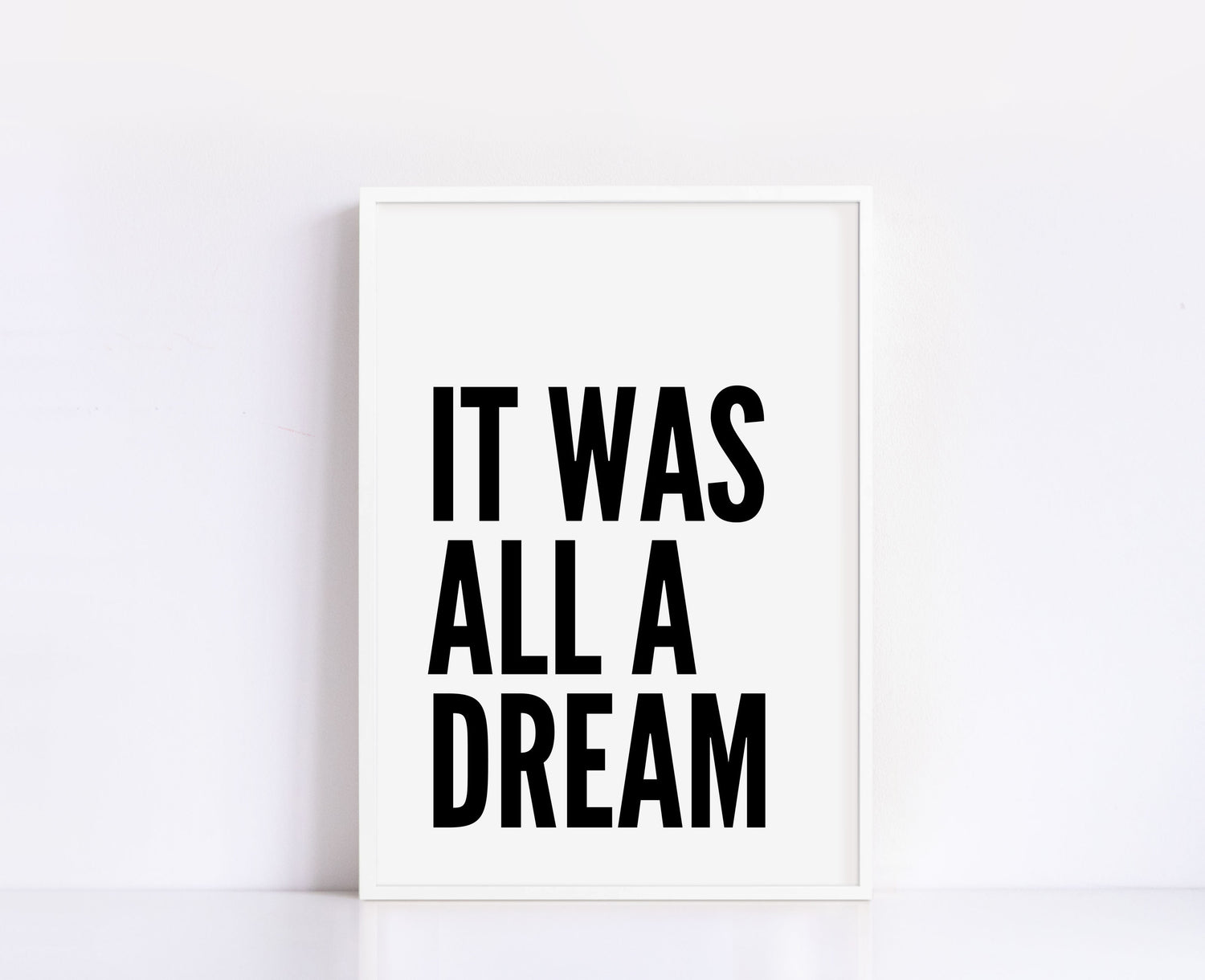 It was all a dream print. Designed on a clean white background with typography styled in a bold black.