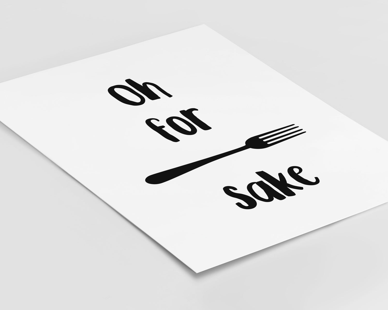 Kitchen print with the quote "oh for forks sake". Designed on a clean white background with typography styled in black.