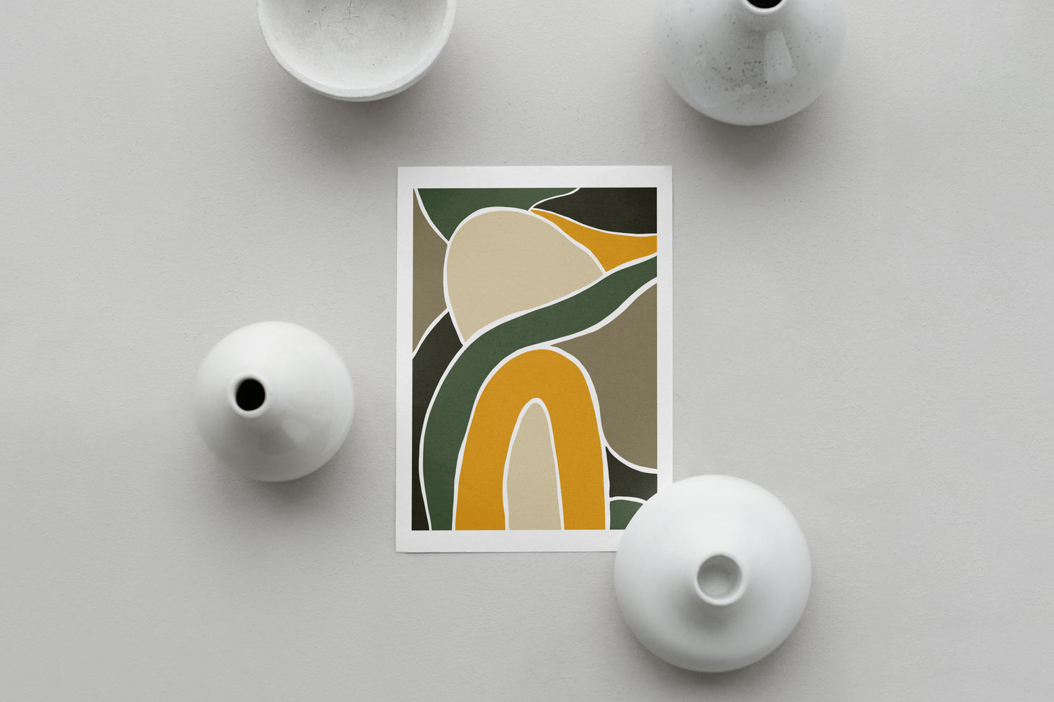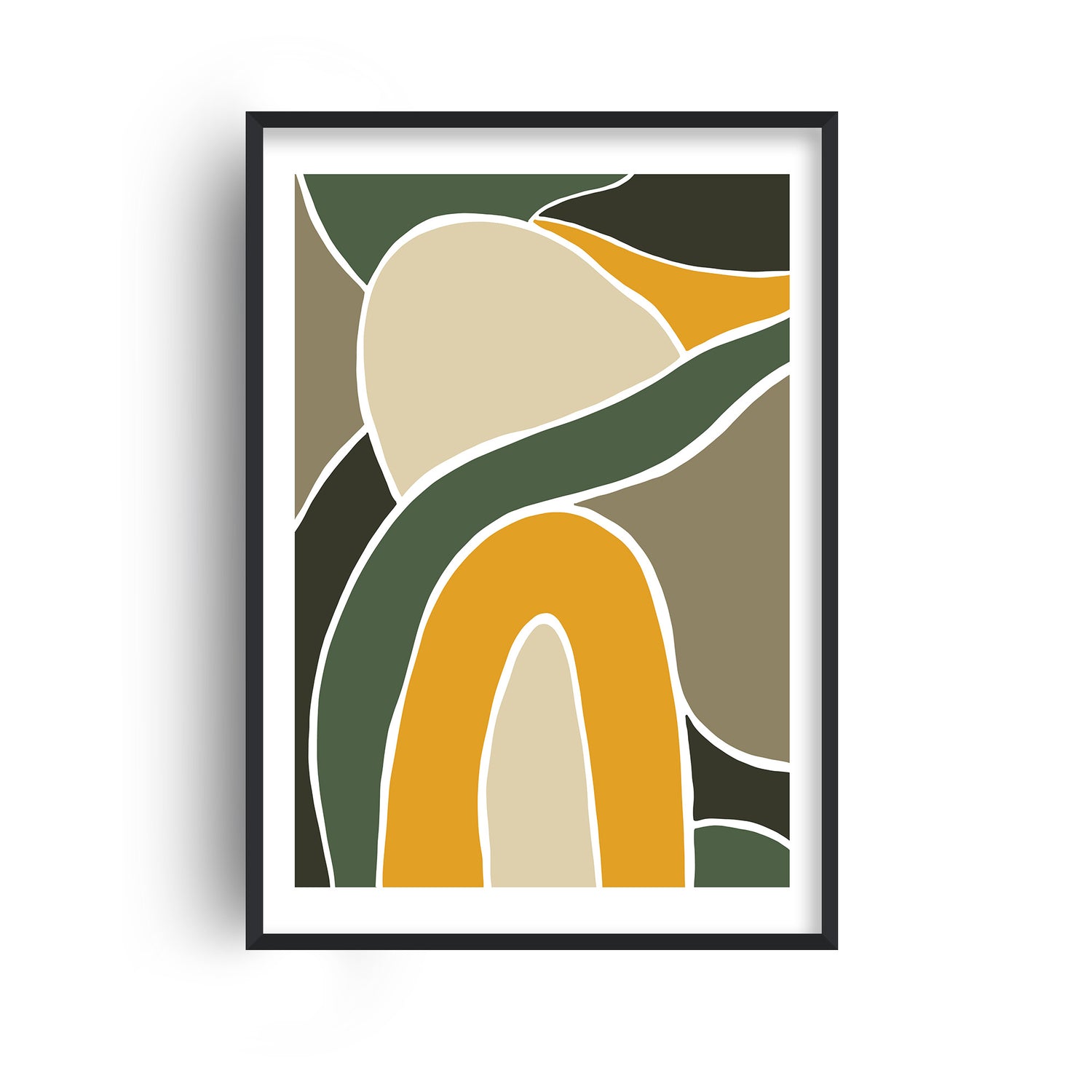 A neutral home wall art print from the Wild Collection. With a rich selection of colours in green, cream, grey and mustard yellow.